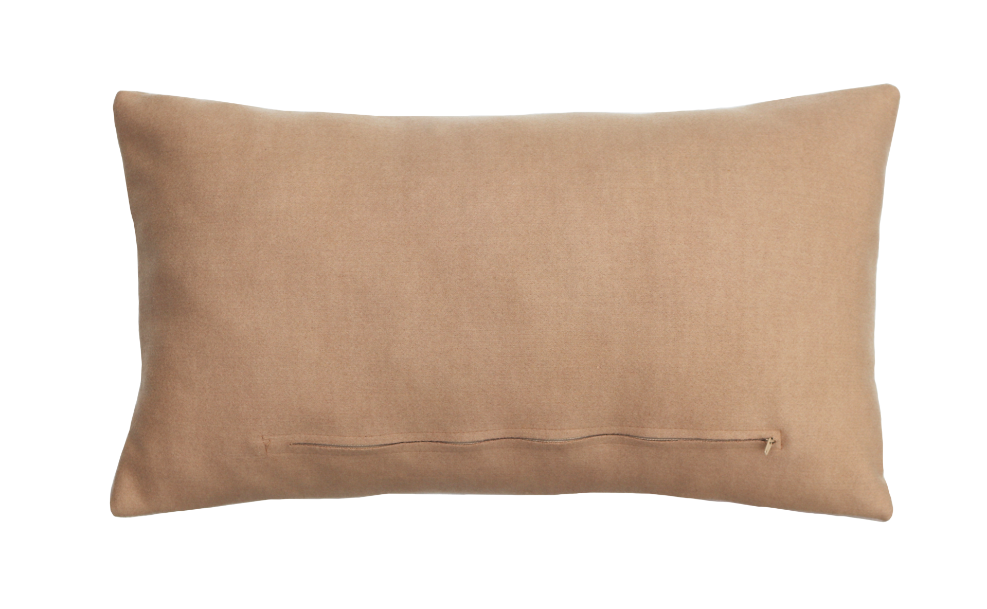 Het kussen is gemaakt van een mooie wolachtige stof met gekleurde strepen aan voorzijde en een camel achterzijde met rits.