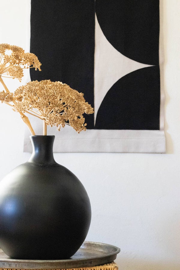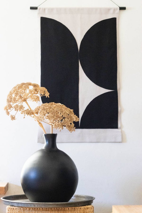 Dit wandkleed is handgemaakt van een mooie dikke wollen stof in de kleuren combinatie zand met zwart.
