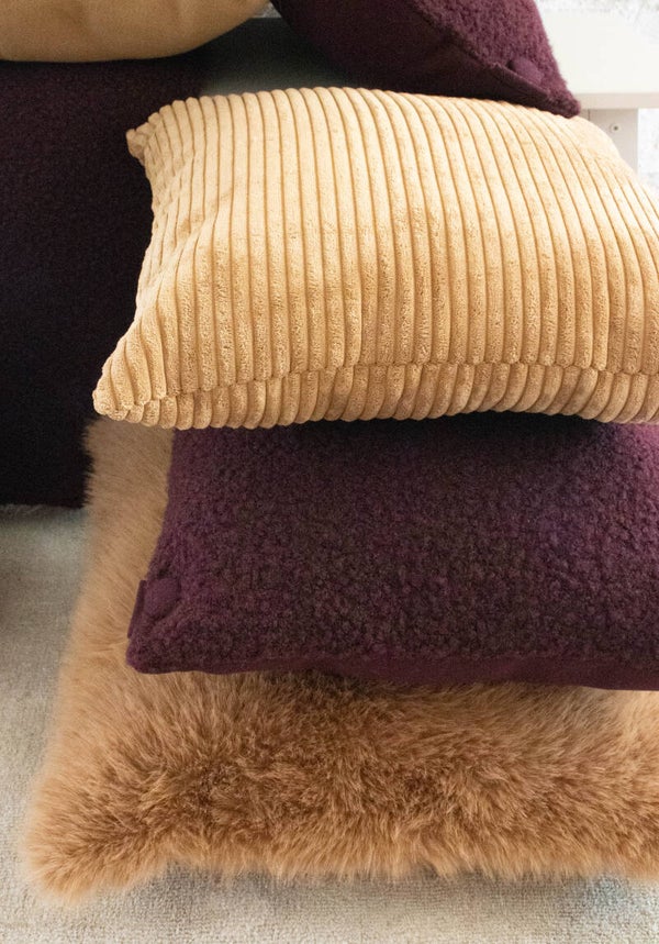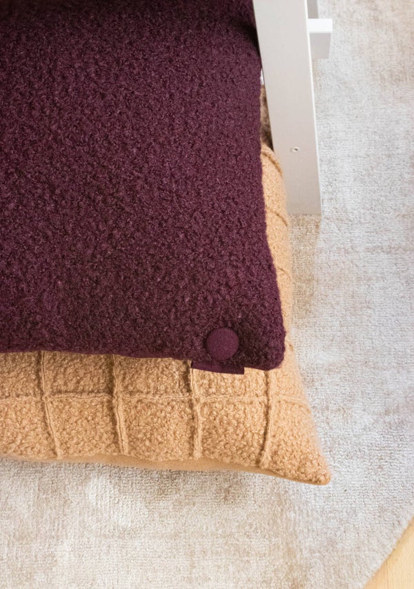 Het kussen is gemaakt van mooie grove bouclé stof, waardoor het kussen een mooie structuur heeft aan de voorzijde. De stof van de achterzijde is gemaakt van een mooie suede-achtige stof, waardoor