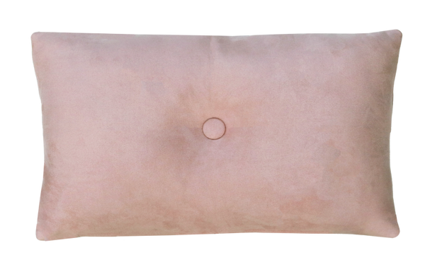 Het kussen is gemaakt van een suéde-look stof met een gestoffeerde knoop aan de voorzijde en achterzijde. Eén zijde heeft decoratieve naden. Het kussen wordt inclusief kussenvulling geleverd.