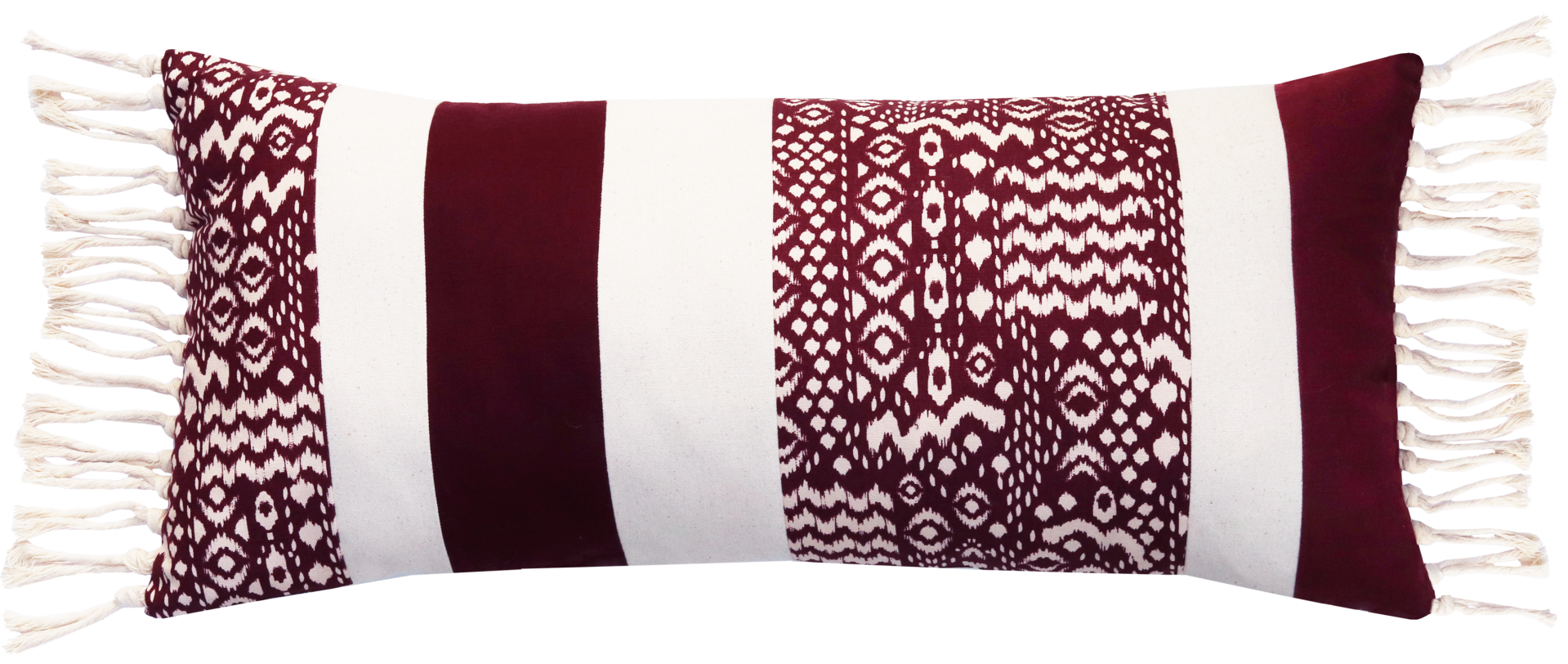 Kussen bohemian streep bordeaux ecru 68x33cm