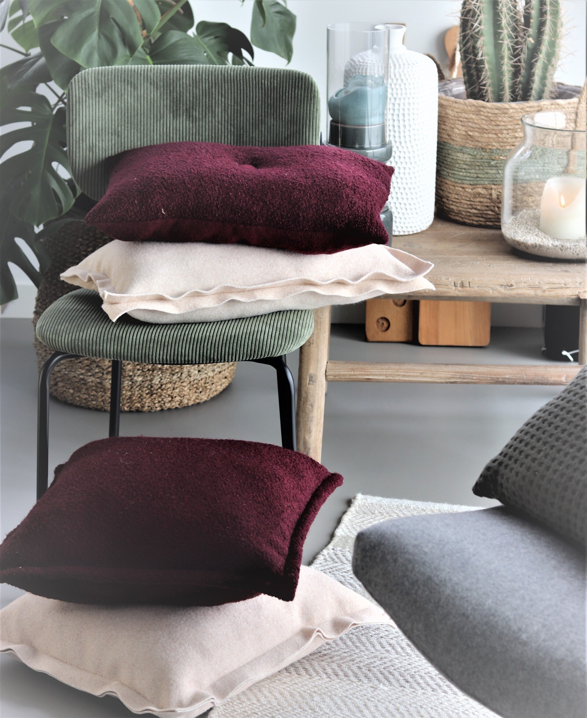 Kussen bouclé bordeaux 55x55